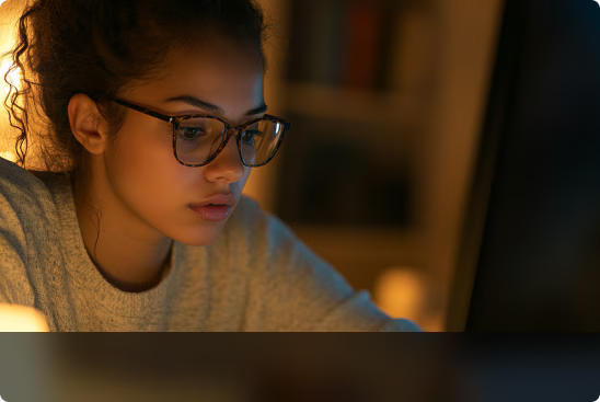 La luz azul dañina puede provocar fatiga visual, dolores de cabeza, alterar tu ciclo natural de sueño e incluso aumentar el riesgo de degeneración macular.