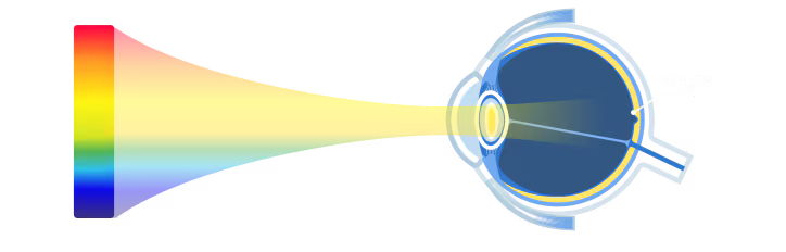Lentes con tinte ligeramente amarillento, diseñado para absorber la luz azul según el principio de colores complementarios.